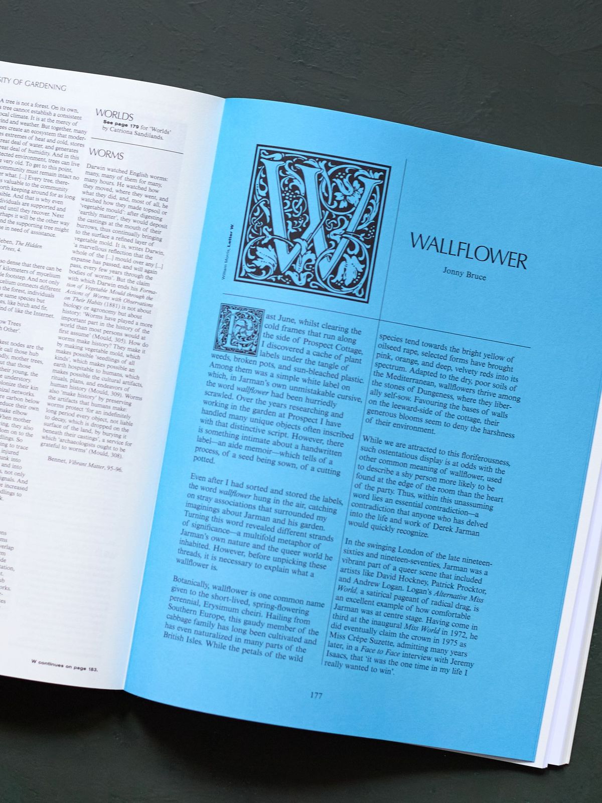 Entries include: Anthropocene, Arcadia, Bouquet, Roberto Burle Marx, Compost, Dumbarton Oaks, Edible Estates, Ermenonville, Ian Hamilton Finlay, Herb Garden, Japanese Garden, Derek Jarman, Kew Gardens, Lawn, Park, Quaker Garden, Queer Ecology, Roots, Vita Sackville-West, Versailles, Vibrant Matter and Zen Garden.