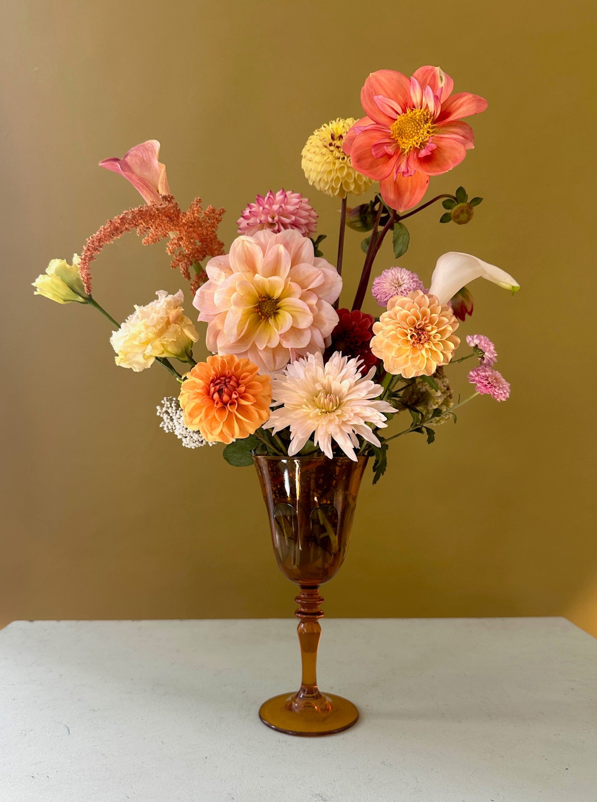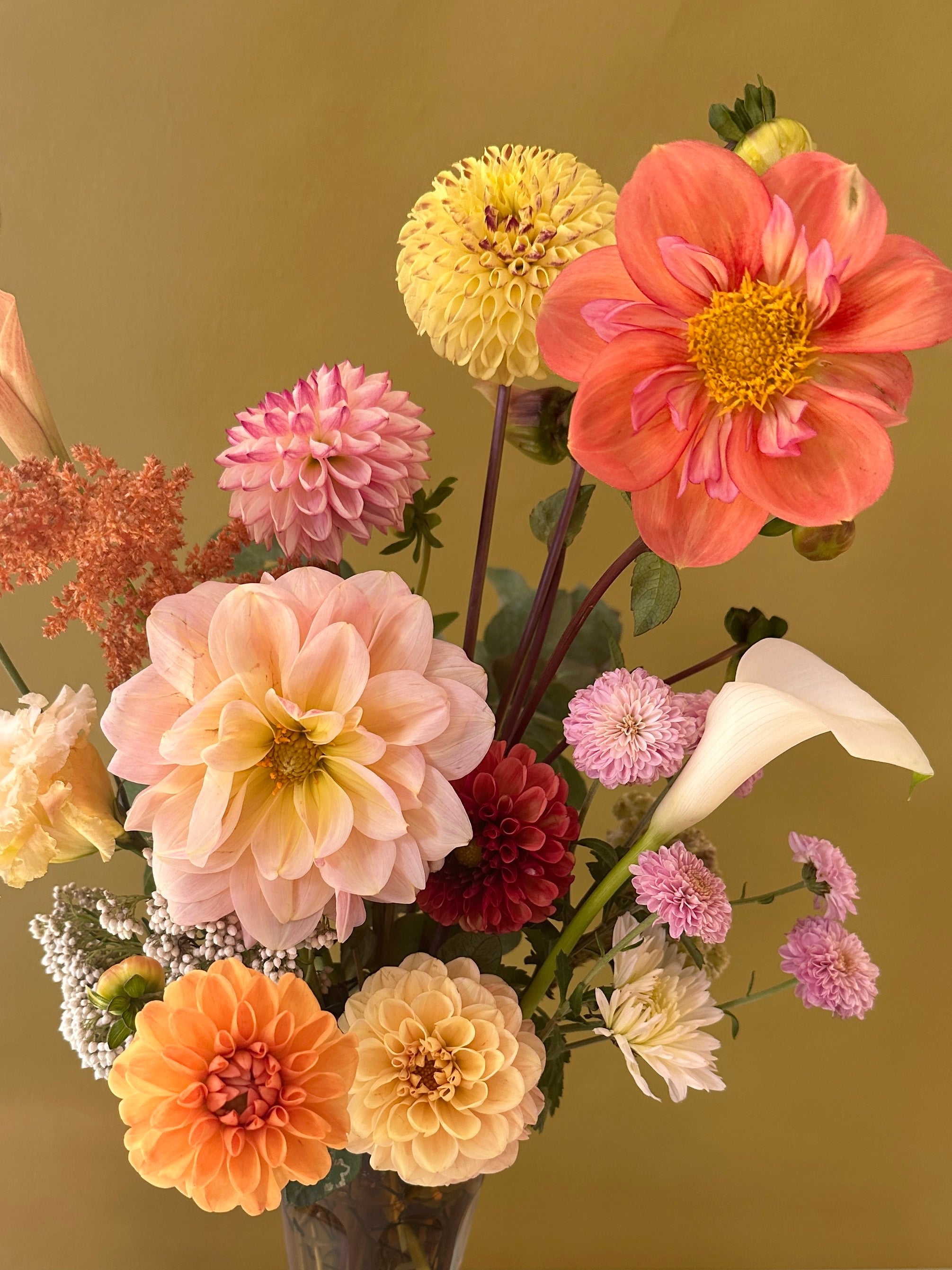 Walter Pine's floral arrangements are created with subtle color shifts in mind, a variety of texture, form and line. We may use flowers other than those pictures as the season unfolds and availability changes, though we will always stay true to the spirit and color palette described.