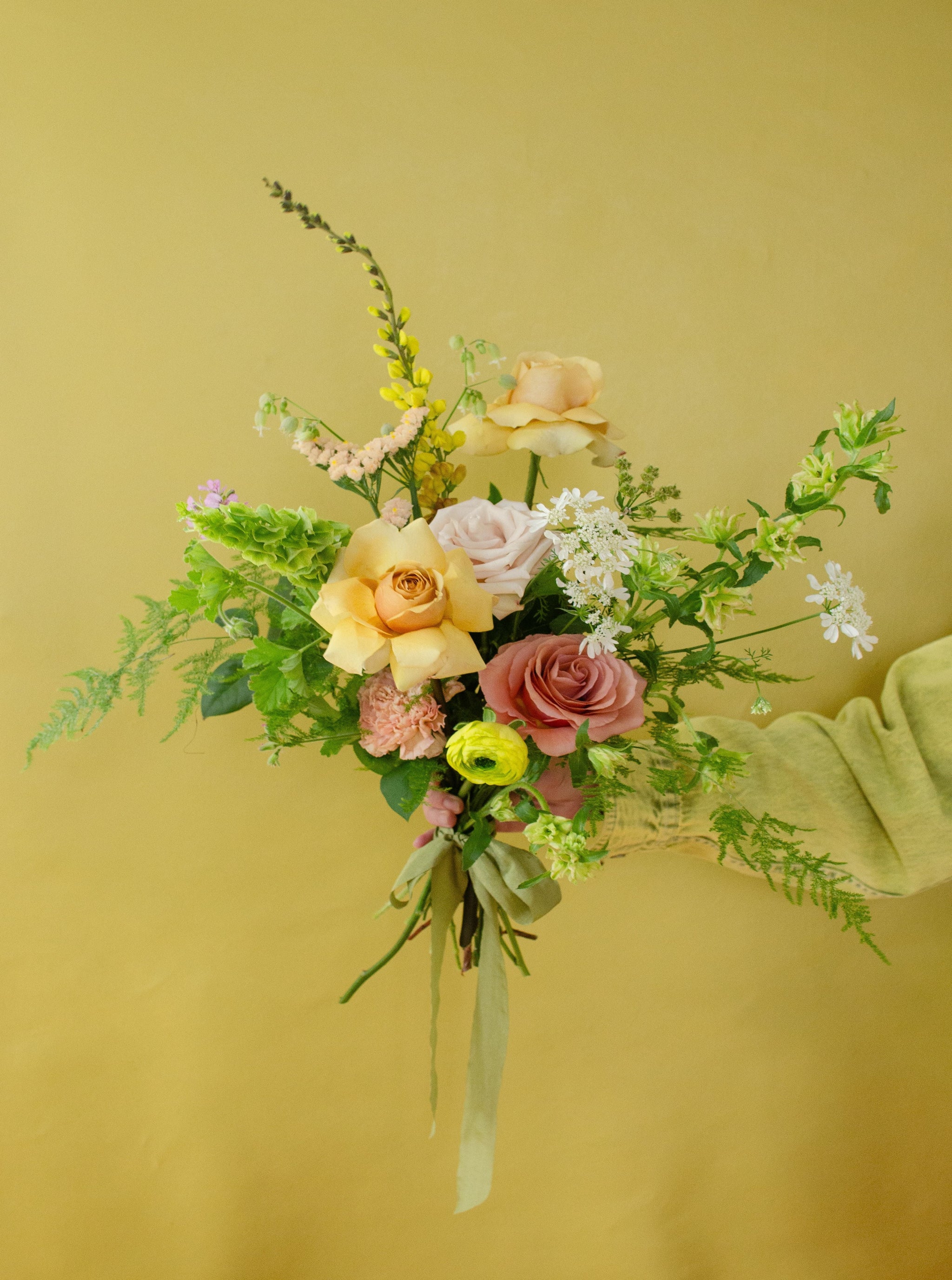 Our bouquets arrive carefully wrapped and ready to be placed in a vessel.