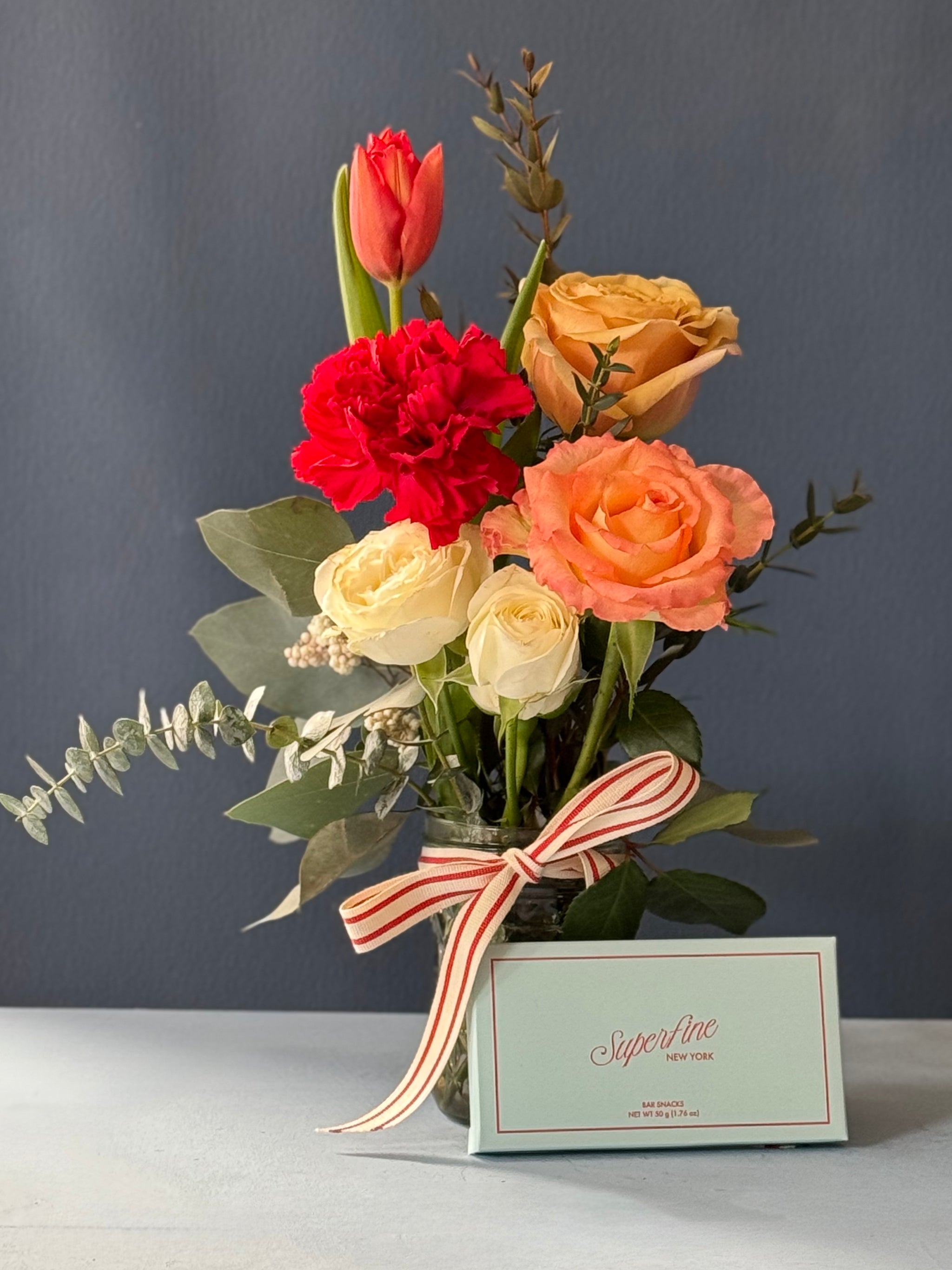 For a love that is super fine! A jar of romantic blooms paired with an artisanal chocolate bar.