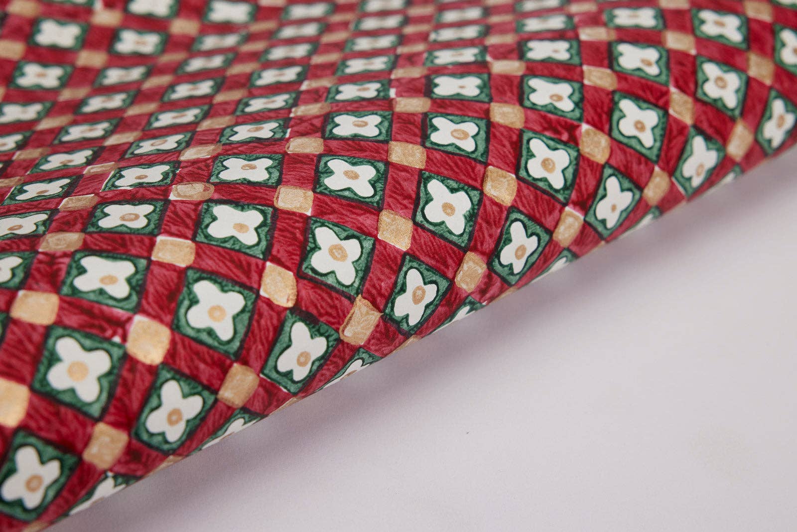 New to our festive collection! Our beautiful range of premium gift wrap is hand block printed on ivory cotton paper using 2 or more colours. A separate wooden block is used for each colour application. Symmetry forms the core of the design and pattern repeats must be perfectly balanced. The colours are stamped one at a time and a high level of skill and precision is required to produce every sheet. The result is a truly stunning sheet of paper which is guaranteed to 'wow'!